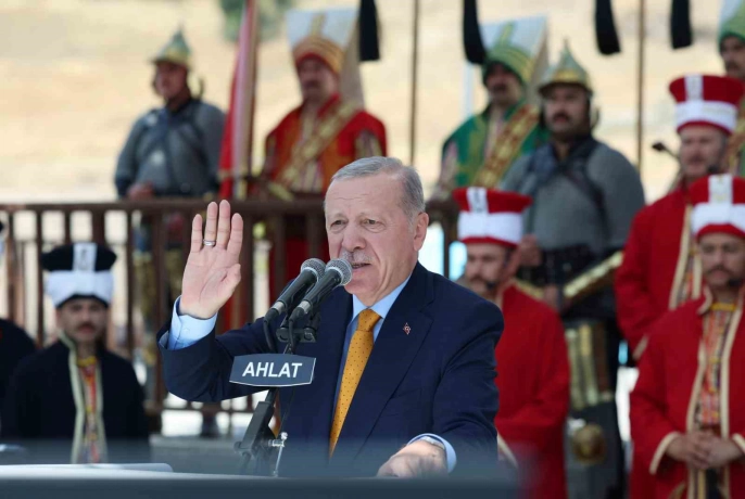 Erdoğan, konuşmasında birlik ve beraberliğin önemini vurgulayarak, 'Birlik ve beraberliğimizi hedef alan tüm saldırıları omuz omuza vererek beraberce püskürteceğiz. Büyük ve güçlü Türkiye’yi Allah’ın izni, milletimizin de desteğiyle gelecek nesillere bizler hediye edeceğiz. Şunu da özellikle ifade etmek istiyorum. İçinde bulunduğumuz asır inşallah Türkiye Yüzyılı olarak tarihteki yerini alacaktır' dedi. Ahlat'ın tarihi önemini hatırlatan Erdoğan, 'Ahlat’ta ilim ferasetle buluşmuş; sanat ve zanaat edep ve ahlakla süslenmiştir' ifadelerini kullandı. Selçuklu kabristanındaki taş mezarların önemine değinen Cumhurbaşkanı, bu eserlerin yalnızca kültür varlığı değil, bin yıllık mevcudiyetin en güçlü şahitleri olduğunu belirtti.