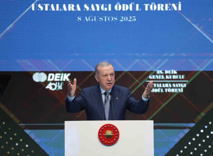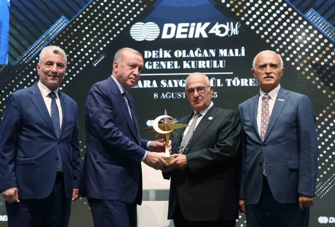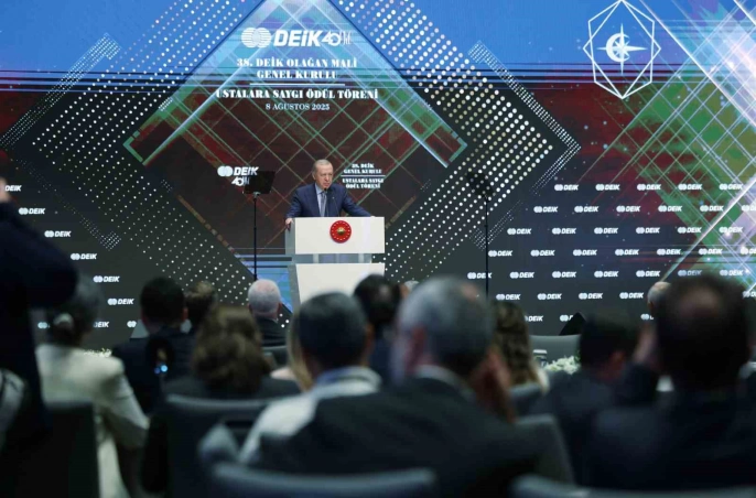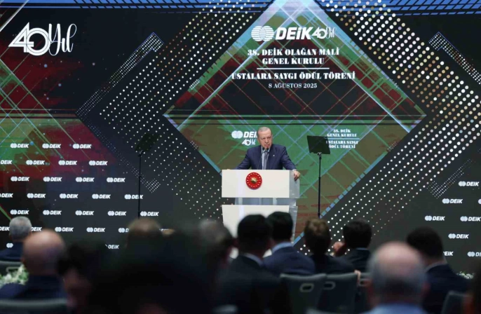 Cumhurbaşkanı Recep Tayyip Erdoğan, İstanbul'da düzenlenen Dış Ekonomik İlişkiler Kurulu (DEİK) 38. Olağan Mali Genel Kurulu ve Ustalara Saygı Ödül Töreni Programı’na katılarak ekonomi ve siyasete ilişkin önemli açıklamalarda bulundu. Erdoğan, DEİK çalışmalarını tebrik ederek merhum Turgut Özal'ı anarak, DEİK'in 40. yılını kutladı ve kuruluşun büyümesini vurguladı. Konuşmasında, DEİK'in Türk iş dünyasının uluslararası alandaki lokomotif kuruluşu olduğunu ve 5 bine yakın üye sayısıyla dünyanın dört bir yanına ulaştığını belirtti.