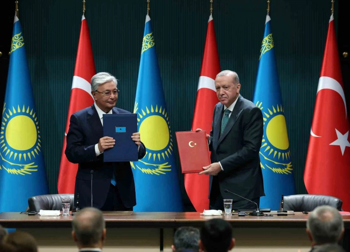 Cumhurbaşkanı Recep Tayyip Erdoğan ve Kazakistan Cumhurbaşkanı Kasım Cömert Tokayev arasında gerçekleşen görüşme, iki ülke arasındaki stratejik ortaklığın daha da güçlendirilmesi adına önemli adımların atıldığını gösterdi. Görüşmede, ticaret hacminin 15 milyar dolara çıkarılması, yatırımların artırılması ve savunma sanayii alanında işbirliğinin geliştirilmesi gibi konular ele alındı. Türkiye'nin, Kazakistan'ın bölgedeki en büyük ticari ortağı olması ve Kazakistan'ın da bölgenin en büyük ekonomisi konumunda bulunması, bu işbirliğinin önemini daha da vurguluyor.
