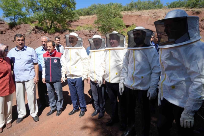 Vali Aydoğdu ve beraberindeki protokol üyeleri, bal hasadının hayırlı olmasını dileyerek üreticilere bol ve bereketli hasatlar dileğinde bulundular. Vali Hamza Aydoğdu, Kültür ve Turizm Bakan Yardımcısı Batuhan Mumcu, Erzincan Belediye Başkanı Bekir Aksun, EBYÜ Rektörü Prof.Dr. Akın Levent, Vali Yardımcısı Hüseyin Aydın, Erzincan Arı Yetiştiricileri Birliği Başkanı Rahmi Özendi ve birim amirleriyle birlikte Erzincan Geven balı hasadına katılım sağladılar.