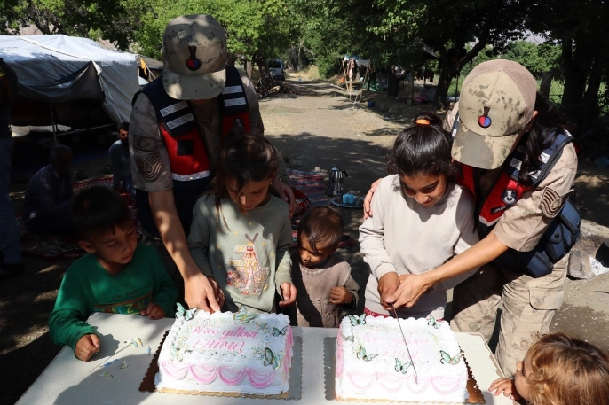 Erzincan İl Jandarma Komutanlığı ekipleri, Adıyaman'dan gelip Erzincan'ın Üzümlü ilçesinde mevsimlik tarım işçisi olarak çalışan bir ailenin çocuklarına unutulmaz bir doğum günü yaşattı.