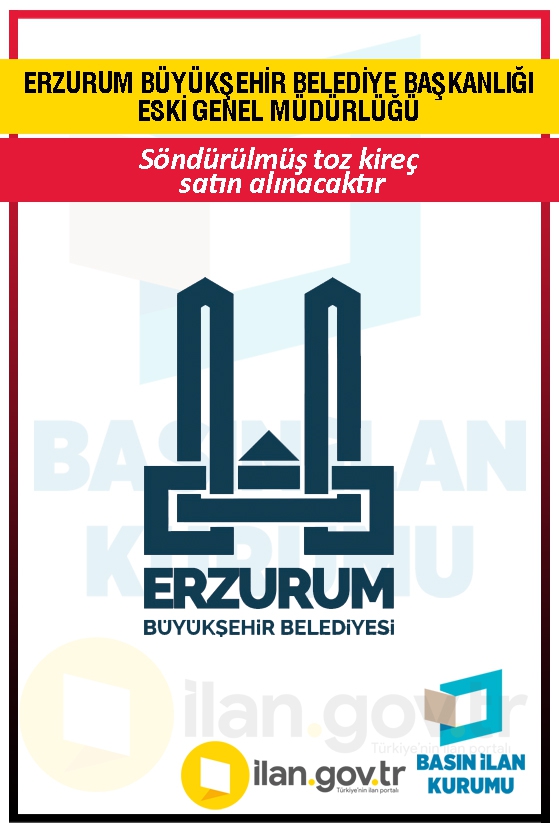 ERZURUM SU KANAL İDARESİ ARITMA TESİSLERİ DAİRE BAŞKANLIĞI tarafından, Söndürülmüş Toz Kireç mal alımı 4734 sayılı Kamu İhale Kanununun 19 uncu maddesine göre açık ihale usulü ile ihale edilecek olup, teklifler sadece elektronik ortamda EKAP üzerinden alınacaktır.Bu ihalede elektronik eksiltme yapılmayacaktır.