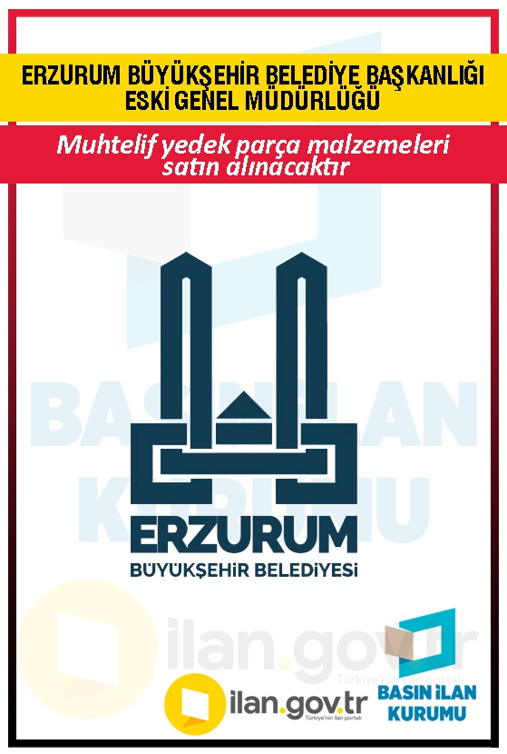 ERZURUM SU KANAL İDARESİ ELEKTRİK MALZEME VE MAKİNE İKMAL DAİRE BAŞKANLIĞI tarafından, Araç ve İş Makineleri İçin Yedek Parça mal alımı 4734 sayılı Kamu İhale Kanununun 19 uncu maddesine göre açık ihale usulü ile ihale edilecek olup, teklifler sadece elektronik ortamda EKAP üzerinden alınacaktır..