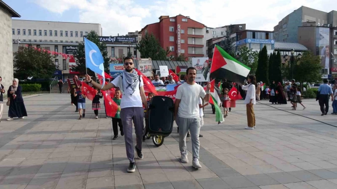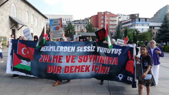 Erzurum’da hekimler ve sağlık çalışanları, İsrail’in Gazze’ye yönelik saldırılarını protesto etmek ve zulmüne dikkati çekmek için 90 haftadır süren sessiz yürüyüşlerini devam ettiriyorlar. Lala Mustafa Paşa Cami önünde toplanan hekimler, tıp fakültesi öğrencileri ve diğer sağlık çalışanları, Türk, Filistin ve Doğu Türkistan bayrakları ile birlikte döviz ve pankartlar taşıyarak Yakutiye Medresesi’ne kadar yürüdüler.
