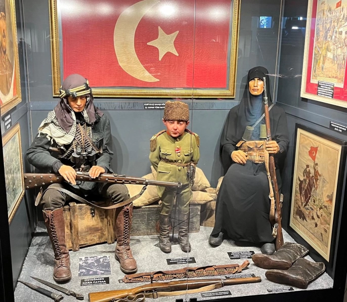 Sergide, Erzurumlu kahraman üsteğmen Kara Fatma'ya ait manken canlandırması da yer alıyor. 1888 yılında Erzurum'da dünyaya gelen Kara Fatma, Milli Mücadele Dönemi'nde asker eşiyle birlikte cepheden cepheye koşmuştur. 1'inci Dünya Savaşı'ndan sonra ülkede işgaller başlayınca önce ailesi, akrabaları ve köylüleriyle küçük savunma çeteleri kuran Kara Fatma, daha sonra çetesiyle düzenli orduya katılmıştır. İstiklal Savaşı'nda 3 yıl hizmet ederek 300 kişilik bir müfrezeyi yöneten Kara Fatma, İzmit'in düşman işgalinden kurtuluşunda önemli rol oynamıştır. 1'inci ve 2'nci İnönü muharebeleri, Sakarya Meydan Muharebesi ve Dumlupınar Meydan Muharebesi'nde çarpışan Kara Fatma'ya İstiklal Madalyası verilmiştir. Kara Fatma, onbaşılık rütbesiyle başladığı askerlik hayatını üsteğmen rütbesiyle tamamlamıştır. Sergiyi gezen 92 yaşındaki Şefika Taş, 'Ben Nene Hatun'un kızı, Kara Fatma'nın torunuyum. Vatan için neler çekmişler. Bunlar Dadaş. Erkeklerle erkek olmuş, mermi taşımışlar. Harbe girmişler' diye konuştu.