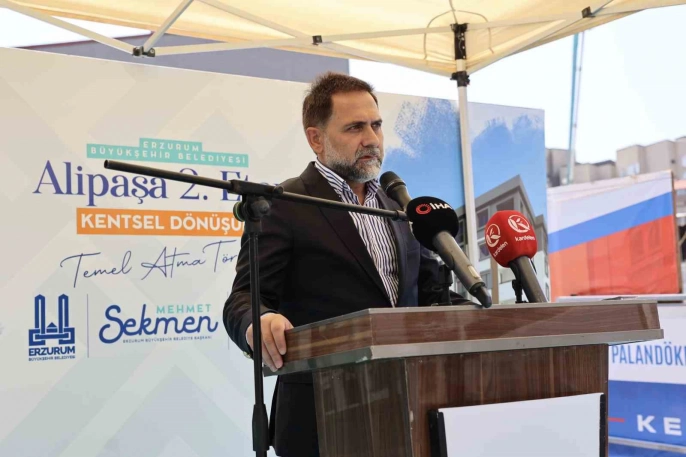 Erzurum Büyükşehir Belediye Başkanı Mehmet Sekmen, yaptığı konuşmada, kentsel dönüşüm projelerinin sadece fiziksel bir yenilenme değil, aynı zamanda toplumsal dayanışmanın ve ortak iradenin bir göstergesi olduğunu vurguladı. Başkan Sekmen, 'İnsanı yaşat ki devlet yaşasın' düsturuyla hareket ettiklerini, Erzurum'u Türkiye'nin parlayan yıldızı haline getirmek için gece gündüz çalıştıklarını ifade etti. AK Parti Erzurum İl Başkanı Av. İbrahim Küçükoğlu da, Erzurum'a yapılan hizmetlerin devam edeceğini ve şehrin geleceği için çalışmaya devam edeceklerini belirtti. Konuşmaların ardından Alipaşa Mahallesi 2. Etap Kentsel Dönüşüm Projesi'nin temeli atıldı.