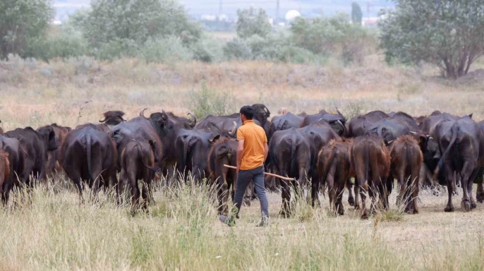 Köy Muhtarı Seyfettin Küçükler, manda yetiştiriciliğinin köylerinde uzun yıllara dayandığını belirterek, bu büyüklükte bir sürüye başka bir köyde rastlanmadığını söyledi. Küçükler, artan hava sıcaklıkları nedeniyle zorluklar yaşadıklarını ve mandaların en büyük ihtiyacının otlanma ve su olduğunu vurguladı. Yetkililerden, bölgede su kaynaklarıyla ilgili planlama ve projeler yaparken mandaların su ihtiyacının da göz önünde bulundurulmasını istedi. AKSI TAKDİRDE, GEÇİM KAYNAĞI OLAN MANDA YETİŞTİRİCİLİĞİNİN KAYBOLACAĞINDAN ENDİŞE EDİYOR. Küçükler, dededen, atadan kalan manda yetiştiriciliğini sürdürmeye çalıştıklarını ve uzmanların manda sütünün birçok faydası olduğunu söylediğini, bu nedenle sağım zamanlarında köyde yoğunluk yaşandığını, manda sütünden yoğurt ve peynir de ürettiklerini ekledi.