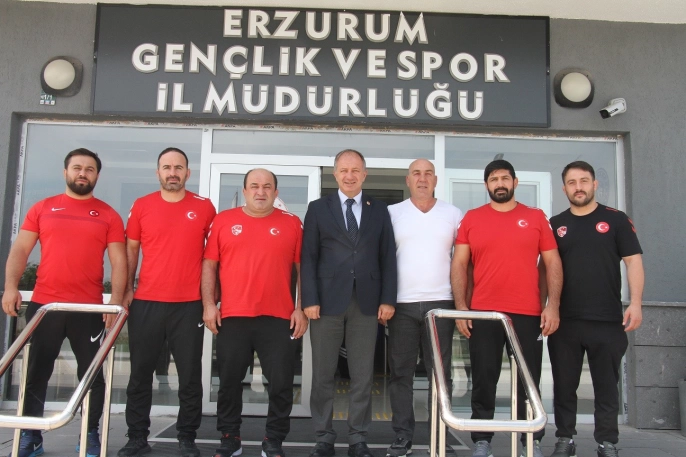 Erzurum Gençlik ve Spor İl Müdürlüğü, Avrupa ve Dünya Şampiyonalarına hazırlanan U20 Güreş Milli Takımının teknik heyetini ağırladı. Ziyarette, milli takım teknik heyeti, Erzurum Gençlik ve Spor İl Müdürü Levent Çakmur'u ziyaret etti.