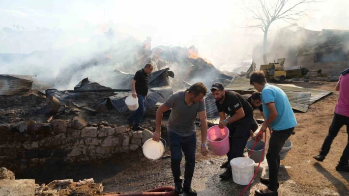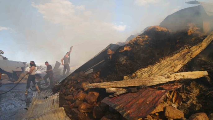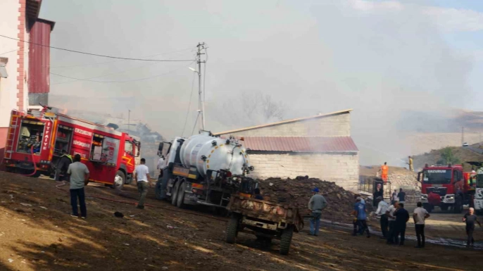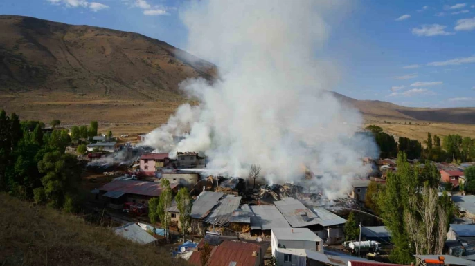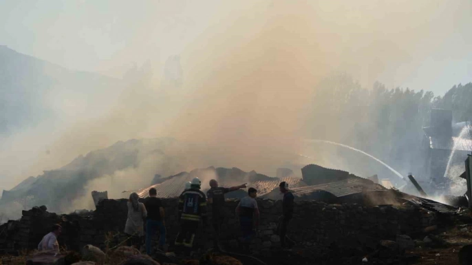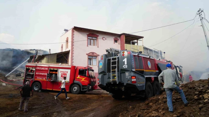 Erzurum'un Yakutiye ilçesine bağlı Kırmızıtaş Mahallesi'nde bugün öğle saatlerinde çıkan yangın, rüzgarın etkisiyle hızla yayılarak büyük hasara yol açtı. Olay yerinde bulunan ot balyalarının alev almasıyla başlayan yangın, çevredeki evleri de etkiledi. Çok sayıda evin kullanılamaz hale geldiği, samanlık ve ahırlarda ise önemli ölçüde hasar oluştuğu bildirildi.