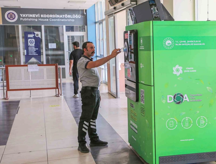 Çevre, Şehircilik ve İklim Değişikliği Bakanlığı'nın Depozito Yönetim Sistemi (DYS) projesi kapsamında Atatürk Üniversitesinde yeni bir uygulama devreye alındı. Üniversite kampüsünde, Merkezi Yemekhane ve Okuma Salonu'na yerleştirilen makineler sayesinde öğrenciler ve vatandaşlar, cam, plastik ve alüminyum ambalaj atıklarını geri dönüşüme kazandırarak e-cüzdanlarına depozito bedeli olarak para kazanabiliyor.