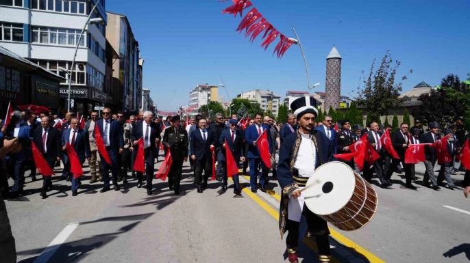 Erzurum'da, tarihin şahitlik ettiği Erzurum Kongresi'nin 106. yıl dönümü, coşkulu bir törenle kutlandı. Havuzbaşı Kent Meydanı'ndaki Atatürk Anıtı'na çelenk sunumuyla başlayan kutlamalar, mehteran takımı ve atlı ciritçilerin eşliğinde kortej yürüyüşüyle devam etti. Şehir protokolü, öğrenciler, gaziler, STK temsilcileri ve vatandaşların katılımıyla gerçekleşen yürüyüş, Kongre Binası önünde sona erdi.