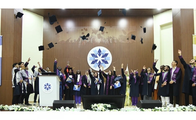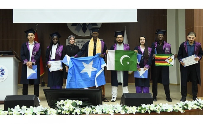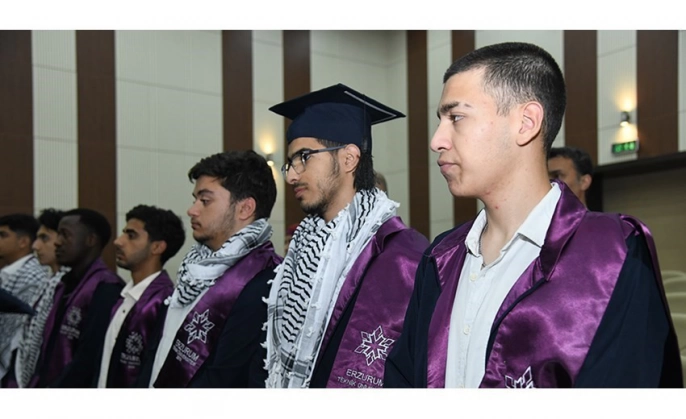 Erzurum Teknik Üniversitesi (ETÜ) Türkçe Öğretimi Uygulama ve Araştırma Merkezi'nde (TÖMER) eğitim gören uluslararası öğrenciler için anlamlı bir mezuniyet töreni düzenlendi. Törende, farklı coğrafyalardan Erzurum'a gelerek eğitim hayatlarına devam eden ve TÖMER'in ilk mezunları olma gururunu yaşayan öğrenciler, diplomalarını aldı.