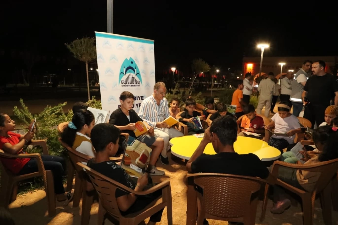 Kültür ve Turizm Bakanlığı koordinasyonunda, Şanlıurfa Valiliği İl Kültür ve Turizm Müdürlüğünce organize edilen, Şanlıurfa İl Halk Kütüphanesi Müdürlüğünce uygulanan ve Eyyübiye Belediyesince desteklenen proje, Eyyübiye Millet Bahçesi'nde hayata geçirildi. Akşam 20.00'de başlayan etkinliğe yoğun ilgi gösterildi. Çocuklar ve gençler, kitaplarla dolu araçtan kitap alarak okudu, Başkan Kuş da onlara eşlik etti. Film gösterimiyle devam eden programa Eyyübiye Belediyesi içecek ikramında bulundu.