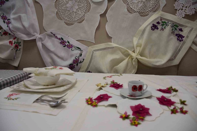 Gaziantep’te Şahinbey Belediyesi’nin açtığı mefruşat kursuna katılan kadınlar, yıl boyunca ürettikleri el emeği göz nuru ürünleri bir sergiyle sergilediler. Kurs, kadınların meslek edinmelerine, aile bütçelerine katkıda bulunmalarına ve kızlarının çeyizlerini hazırlamalarına yönelik olarak düzenlendi.