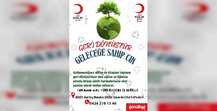 Genç Kızılay Elazığ Şubesi, çevre bilincini artırmayı ve kırsal bölgelerdeki öğrencilere destek olmayı amaçlayan yeni bir projeyi hayata geçirdi. Proje kapsamında, kullanılmayan kitap ve defterler geri dönüşümle değerlendirilecek ve özel çantalara dönüştürülecek. Bu çantalar daha sonra ihtiyaç sahibi öğrencilere ulaştırılacak.