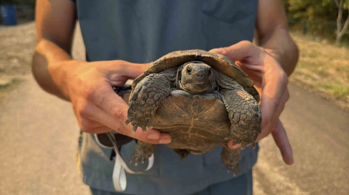 Yangının şiddetiyle mücadele eden sadece insanlar değildi. Alevlerden kaçmaya çalışan bir kaplumbağa, veteriner hekimlerin dikkatini çekti. Hızla alevlerin arasından uzaklaşan kaplumbağa, güvenli bir yere alınarak gerekli kontrollerden geçirildi. Veteriner hekim, kaplumbağanın herhangi bir yaralanma belirtisi göstermediğini ancak vücut ısısının yüksek olduğunu belirtti. Doğa Koruma ve Milli Parklar (DKMP) ekiplerine teslim edilecek olan kaplumbağanın sağlığı için dua ediyoruz. Bu olay, doğal hayatın korunmasının önemini bir kez daha gözler önüne serdi.