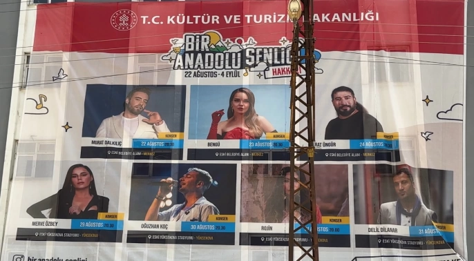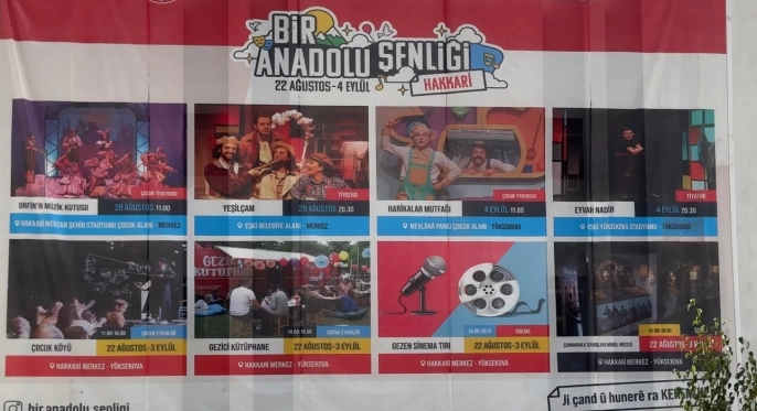 Kültür ve Turizm Bakanlığı koordinesinde düzenlenecek olan 'Bir Anadolu Şenliği', Hakkari'nin Yüksekova ilçesinde yapılacak etkinliklere dair dev pankartlar asılarak duyuruldu. 22 Ağustos - 28 Eylül tarihleri arasında beş farklı şehirde gerçekleştirilecek şenliğin ilk ayağı Hakkari olacak.