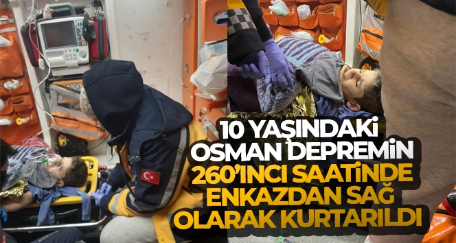 Hatay’da 10 yaşındaki Osman adlı erkek çocuğu depremin 260’ıncı saatinde enkazdan sağ olarak kurtarıldı. Sağlık durumunun iyi olduğu öğrenilen çocuk sağlık ekiplerine teslim edildi.