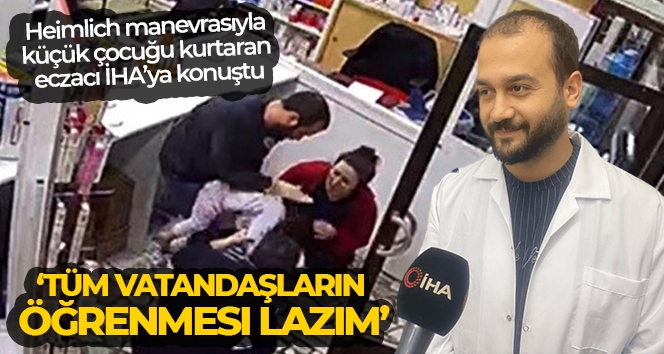 Heimlich manevrasını okulda öğrendiği söyleyen Eczacı Ömer Faruk Can, "Bir anne koşa koşa bebeğiyle birlikte eczanemize geldi. Çok telaşlıydı, bebeğinin boğazına besin kaçmıştı. Bebek nefes alamıyordu, ben de hemen kucağıma aldım. Yüzü mosmordu, boğazında bir şey tıkanmıştı. Hemen Heimlich manevrası uyguladım. Bu bizim genelde solunum yolunda bir problem olunca uyguladığımız bir ilk yardım yöntemidir. Bu uygulama yaklaşık 1-2 dakika sürdü. Daha sonra bebek nefes almaya başladı, zaten o sırada boğazına kaçan şey de çıktı. Çok şükür bebek hayata döndü, bunun mutluluğu içerisindeyiz. Ben bu uygulamayı okulumda öğrenmiştim. Bu uygulamayı herkesin öğrenmesi lazım. Özellikle anne ve babaların bu konuda daha hassas olması gerekiyor. Çünkü komşumuz evden aşağı inene kadar orada bir zaman kaybediyor. Burada saniyelerin de önemi var. Bu yüzden tüm vatandaşların öğrenmesi lazım. O an müdahale etmek gerekiyor, saniyelerle yarışıyoruz" şeklinde konuştu.