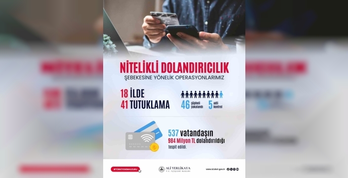 Tekirdağ merkezli olmak üzere İstanbul, Gaziantep, Hatay, Manisa, Adana, Antalya, Diyarbakır, Karaman, Mersin, Kırklareli, Osmaniye, Sakarya, Aydın, Yalova, İzmir, Kocaeli ve Muğla illerinde eş zamanlı olarak gerçekleştirilen operasyonlar neticesinde, 537 vatandaşın toplam 984 milyon lira dolandırıldığı belirlendi. Bakan Yerlikaya, operasyonlarda emeği geçen valileri, cumhuriyet başsavcılıklarını, EGM Asayiş Daire Başkanlığını, Tekirdağ İl Emniyet Müdürlüğünü, Asayiş Şube Müdürlüğünü ve görev alan kahraman polisleri tebrik ederek, milletin alın terine göz dikenlere geçit verilmeyeceğini ve mücadelelerinin aralıksız devam edeceğini vurguladı.