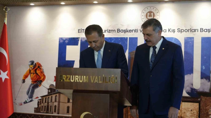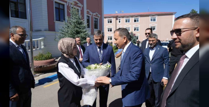 Erzurum Valiliği'ne gelen Bakan Yerlikaya, çiçeklerle karşılandı. Valilik Şeref Defteri'ni imzaladıktan sonra Vali Mustafa Çiftçi ve beraberindeki heyetle Valilik Makamı'nda görüşmeler gerçekleştirdi.