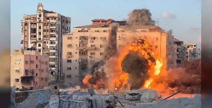 İsrail ordusu, Gazze'deki Er-Ruya binasına ve çevresine saldırı düzenledi. ABD merkezli X şirketinin sosyal medya platformu üzerinden yapılan açıklamada, Gazze şehrinin Rimal Mahallesi'ndeki Er-Ruya binası ve çevresinin hedef olacağı duyurulmuştu.