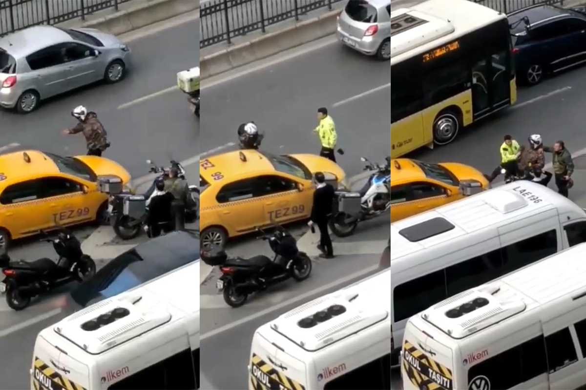 Olay, dün öğle saatlerinde Şişli Gayrettepe'de meydana geldi. Edinilen bilgiye göre, trafikte seyir halinde olan motosiklet sürücüsü ile taksi şoförü arasında yol verme nedeniyle tartışma çıktı.