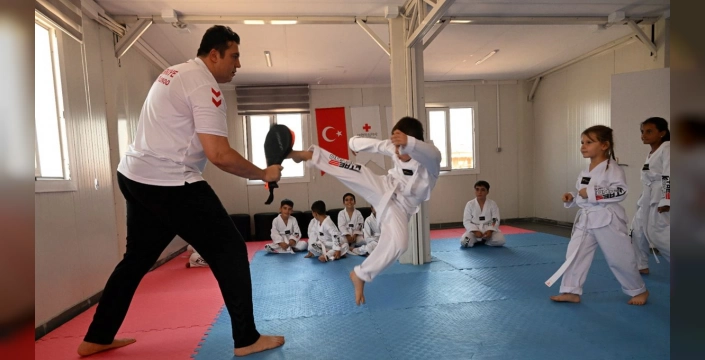 Türk Kızılayı ve Kore Kızılhaçı işbirliğiyle Kahramanmaraş’ta depremzede çocuklar için açılan tekvando kursunda, 30 çocuk hem rehabilite oluyor hem de geleceğin şampiyonları olma yolunda eğitim alıyor.