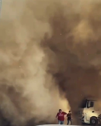 6 Şubat depremlerinde hasar gören bir binanın kontrollü olarak yıkımı sırasında oluşan toz bulutu, rüzgarın etkisiyle hızla yayıldı. Aniden bastıran toz bulutu karşısında panikleyen vatandaşlar, yakınlardaki iş yerlerine ve dükkanlara sığındı. Olayı cep telefonu kamerasıyla kaydeden bir vatandaşın görüntüleri, yaşanan paniği gözler önüne seriyor. Görüntülerde, binanın yıkılmasının ardından hızla yayılan toz bulutu ve vatandaşların güvenli alanlara kaçışları net bir şekilde görülüyor. Bu durum, benzer yıkımlarda alınacak önlemlerin önemini bir kez daha ortaya koyuyor.