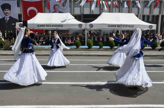 Kars’ta, 30 Ağustos Zafer Bayramı’nın 103. yıldönümü, resmi bir törenle coşkuyla kutlandı. Hükümet Konağı önündeki Atatürk Anıtı’na Valilik, Garnizon Komutanlığı ve Belediye Başkanlığı tarafından çelenk sunuldu. Saygı duruşu ve İstiklal Marşı’nın okunmasının ardından tören devam etti.