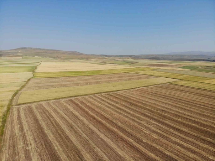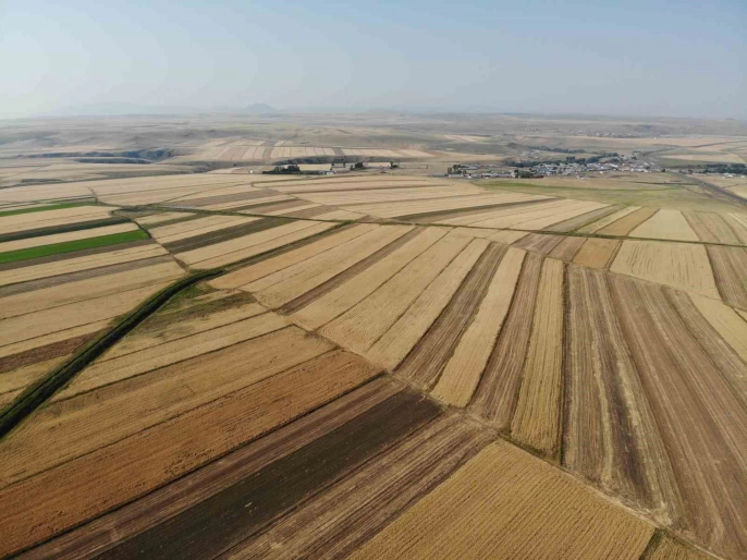 Kars’ın Susuz ve Arpaçay ilçelerindeki tarım arazileri, adeta bir halı deseni gibi rengarenk tarlalarıyla görenleri büyülüyor. Özellikle dron ile çekilen görüntüler, eşsiz bir kartpostal manzarasını gözler önüne seriyor. Çiftçilerin biçim için yaptıkları hazırlıklar, kahverengi, yeşil ve sarı tonlarının birleşimiyle doğa tablosu oluşturdu.