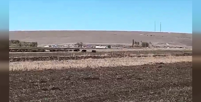 Karahan köyünde ilk kez bu kadar büyük bir yaban domuzu sürüsü görülmesi, köylüler arasında endişe yarattı. Görüntülerde, domuzların tarlalarda rahatça dolaştığı ve mısırları yediği görülüyor.