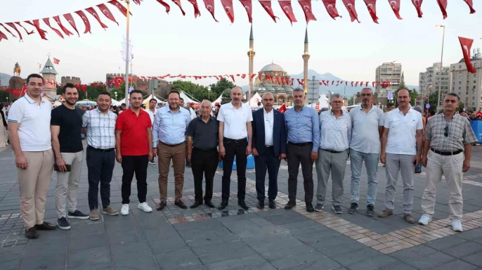 Ellerinde Türk bayraklarıyla yürüyüşe katılan KTO, KAYSO, MÜSİAD, Mimarsinan, İncesu ve Erciyes OSB başkanları ile yönetim kurulu üyeleri, vatandaşlarla birlikte Cumhuriyet Meydanı’na yürüdü. Burada düzenlenen programa KTO Başkanı Ömer Gülsoy, KAYSO Başkanı Mehmet Büyüksimitci, MÜSİAD Kayseri Şube Başkanı Ferhat Akmermer, Mimarsinan OSB Başkanı Lütfi Çarşıbaşı, İncesu OSB Başkanı İrfan Püsküllü, Erciyes OSB Başkanı Mehmet Sarıalp ve her kurumdan yönetim kurulu üyeleri katıldı. Protokolün de ziyaret ettiği Demokrasi Çadırı’nda halkla sohbet edilip çeşitli ikramlarda bulunuldu. Program kapsamında geç saatlere kadar süren etkinliklerde şehitler için dualar edildi, 15 Temmuz’un anlam ve önemi vurgulandı.