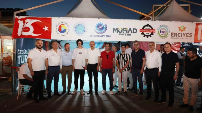 Kayseri’de 15 Temmuz hain darbe girişiminin 9. yıl dönümünde, Türkiye Odalar ve Borsalar Birliği (TOBB) üyesi Kayseri Ticaret Odası (KTO), Kayseri Sanayi Odası (KAYSO), MÜSİAD Kayseri Şubesi, Mimarsinan, İncesu ve Erciyes Organize Sanayi Bölgeleri temsilcileri, Cumhuriyet Meydanı’nda kurdukları ‘Demokrasi Çadırı’ ile halkla buluştu. 15 Temmuz Demokrasi ve Milli Birlik Günü anma programları, Kayseri Valiliği ve il protokolünün katılımıyla Kartal Şehitliği önünde ‘15 Temmuz Zaferin Adı Türkiye Yürüyüşü’ ile başladı.