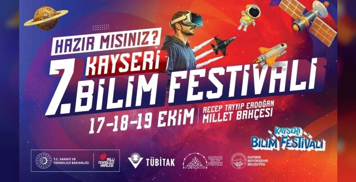 Kayseri Büyükşehir Belediyesi tarafından bu yıl 7'ncisi düzenlenecek olan Kayseri Bilim Festivali, 17 Ekim Cuma günü Recep Tayyip Erdoğan Millet Bahçesi'nde kapılarını açıyor. Bilim ve teknoloji meraklılarını bir araya getirecek etkinlikte, çeşitli atölyeler, deneyler ve interaktif gösterilerin yanı sıra SOLOTÜRK gösteri ekibi de yer alacak.