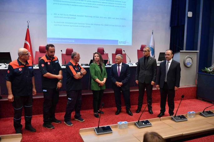 Büyükşehir Belediye Başkanı Dr. Memduh Büyükkılıç’ın da katıldığı eğitim programında, Başkan Büyükkılıç, bilgi, donanım ve eğitimin önemini vurgulayarak, ‘faydalı olmaktan ziyade zararlı olmamanın’ bilgi, beceri ve ekip çalışmasıyla mümkün olduğunu belirtti. Başkan, Cumhurbaşkanımız Recep Tayyip Erdoğan’ın liderliğinde yürütülen milli birlik ve dayanışma ruhunu örnek göstererek, yerel yönetimlerin afetlerde önemli rol üstlendiğini ifade etti. Şehrimizin geleceği için bu tür eğitimlerin önemine değinerek, ‘biz birlikte anlam ifade ederiz’ diyerek ekip çalışmasının altını çizdi.