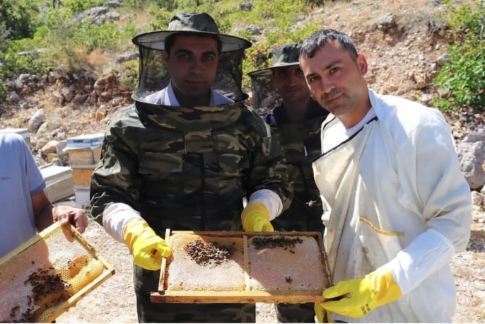 Kemah'ın Konuksever köyünde başlayan bal hasadına Kaymakam Resul Tutay da katılarak arıcılara destek verdi. 14 bin 750 arı kovanının bulunduğu Kemah'ta, kekik ve geven bitkilerinden elde edilen kaliteli ballar üretiliyor.