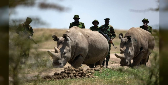 Dünyada sadece iki kuzey beyaz gergedanı kalmış durumda ve bu nadir hayvanlar, tüp bebek yöntemiyle nesillerini devam ettirme umuduyla yaşıyor. Sıkı güvenlik önlemleri altında, 24 saat silahlı korumalar tarafından gözetim altında tutuluyorlar.