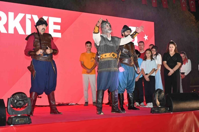 Cumhurbaşkanı Erdoğan’ın konuşmasının ardından konuşan Vali Mehmet Makas, 15 Temmuz’un 9’uncu yıl dönümünde birlik ve beraberlik vurgusu yaptı. FETÖ’nün hain darbe girişiminin püskürtülmesini hatırlatarak, aynı hataya düşmemek için birlik ve beraberliğin önemini vurguladı. Çanakkale ve Kıbrıs’ta başaramadıklarını 15 Temmuz’da başarmaya çalıştıklarını belirterek, Türk milletinin dimdik durduğunu ifade etti. Terörsüz bir Türkiye hedefiyle, 86 milyonun kucaklaşmasıyla barışı ve hoşgörüyü sağlayacaklarını belirtti.