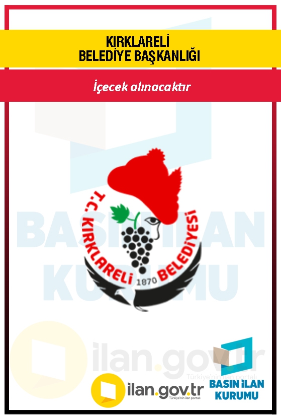 KIRKLARELİ BELEDİYESİ tarafından, İÇECEK ALIMI mal alımı 4734 sayılı Kamu İhale Kanununun 19 uncu maddesine göre açık ihale usulü ile ihale edilecek olup, teklifler sadece elektronik ortamda EKAP üzerinden alınacaktır.