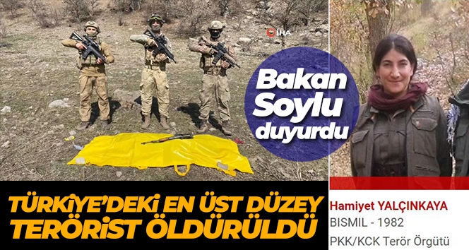 İçişleri Bakanlığı, yurt içindeki sözde en üst düzey terörist olan ve kırmızı kategoride aranan Hamiyet Yalçınkaya'nın Şırnak kırsalında etkisiz hale getirildiğini bildirdi. Açıklamada, 7 Mart'ta başlayan ve devam eden Eren Abluka Sonbahar Kış-26 Şehit Jandarma Uzman Çavuş İslam Çubuk 2023-1 Operasyonu kapsamında çatışma bölgesindeki aramalar sırasında bulunan bir cesedin yurt içindeki en üst düzey terörist olan ve kırmızı kategoride aranan sözde Botan Saha Sorumlusu Leyla Amed kod adlı Hamiyet Yalçınkaya olduğunun belirlendiği belirtildi.