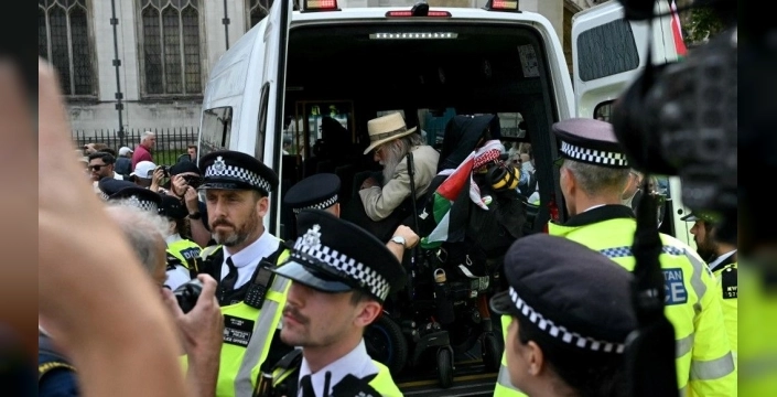 İngiltere polisi, yasaklı örgüt ilan edilen 'Palestine Action' grubuna destek amacıyla Londra'da düzenlenen bir eylemde çok sayıda kişiyi gözaltına aldı. Parlamento Meydanı'nda toplanan protestocular, yerel saatle 13.00'te eylemlerine başladı. 'Defend Our Juries' grubunun çağrısıyla bir araya gelen eylemciler, yanlarında boş pankartlar ve kalemler getirerek, 'Soykırıma karşıyım, Palestine Action'ı destekliyorum' yazılı pankartlar hazırladı.