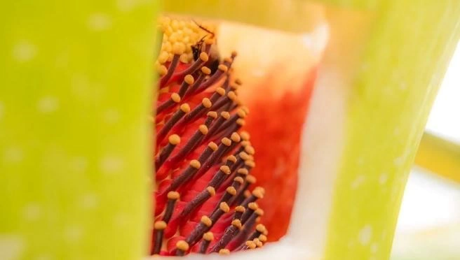 Böylece, titan arum ve aristolochia goldiena ilk kez aynı anda açmış oldu. Her iki çiçeğin de polenleri çekebilmek için kötü koku yaydığı vurgulandı. Kew Gardens çalışanlarının, çiçeklerin açılmasına yardımcı olmak amacıyla daha önce toplanan polenleri dondurup sonraki yıllarda bu bitkilere taşıdığı da açıklandı.