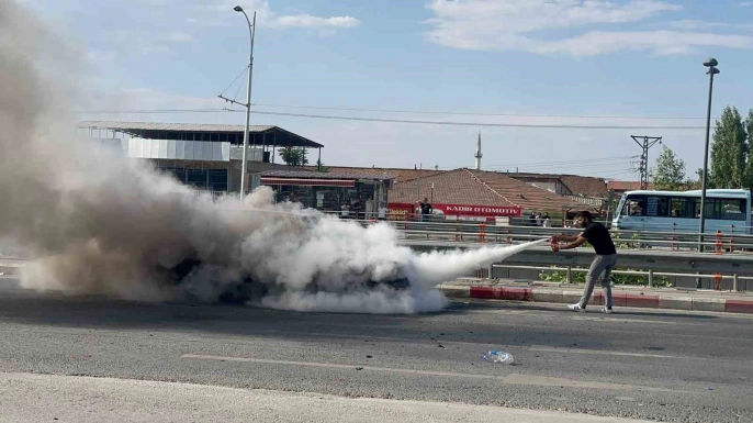 Aracın yandığını fark eden sürücü, soğukkanlılığını koruyarak hızlı bir şekilde müdahalede bulundu. Çevredeki vatandaşlardan temin ettiği su bidonu ve yangın tüpüyle alevlere karşı mücadele etti. Ancak, yangın tamamen söndürülemedi ve itfaiye ekiplerinin müdahalesine ihtiyaç duyuldu. Sürücünün gösterdiği özveri ve çabası takdire şayandır. Bu olay, bir kez daha yangın güvenliğinin ne kadar önemli olduğunu hatırlatmaktadır.