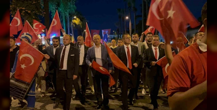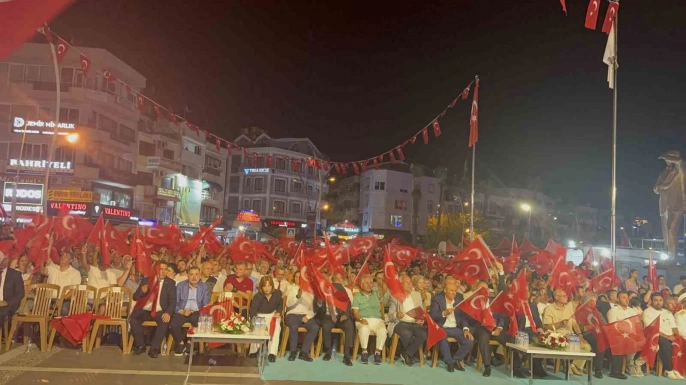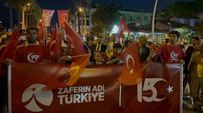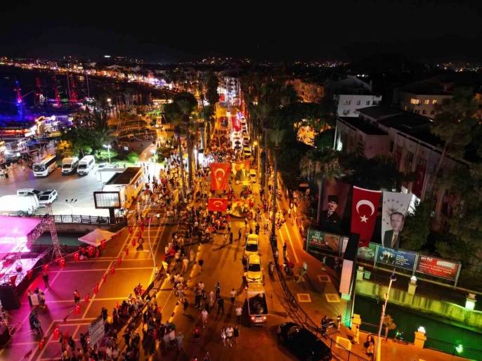 Akşam saatlerinde 15 Temmuz Demokrasi Meydanı'ndan başlayan milli birlik araç korteji ve yürüyüş, Türk bayraklarıyla Marmaris Atatürk Meydanı'na kadar uzandı. Meydanda yapılan törende Kur'an-ı Kerim okundu, Muğla milletvekilleri ve Vali İdris Akbıyık konuşmalar yaptı. Cumhurbaşkanı Recep Tayyip Erdoğan'ın 15 Temmuz'a ilişkin video mesajı da izlendi. Mehter takımı konseri ve Ali Kınık'ın sahne aldığı gecede 15 Temmuz'a özel şiirler okundu. Bayrak koşusunda dereceye giren sporcular ödüllendirildi.