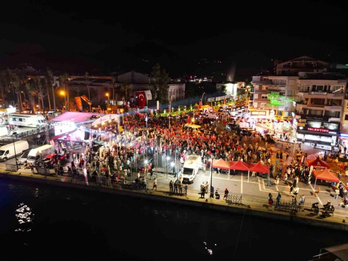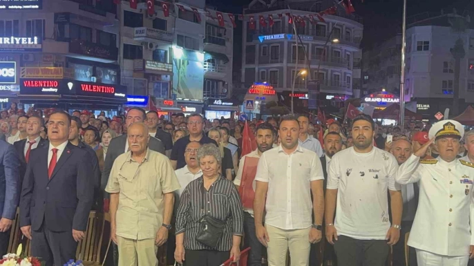 Saat 00.13'te Marmaris'teki tüm camilerden sela okunmasının ardından kum sanatı gösterisi ve ışıklı su sporları gösterisiyle program sona erdi. Etkinliğe şehit aileleri, Vali İdris Akbıyık, Marmaris Kaymakamı Nurullah Kaya, milletvekilleri, il ve ilçe protokolü, siyasi parti temsilcileri ve çok sayıda vatandaş katıldı.