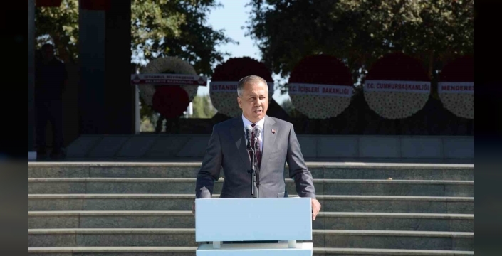 İçişleri Bakanı Ali Yerlikaya'nın törende yaptığı konuşmada, 27 Mayıs darbesiyle milli iradenin çiğnendiğini vurgulayarak, o dönemde yargılanan 592 kişinin insanlık dışı işkencelere maruz kaldığını belirtti. Yerlikaya, Menderes, Zorlu ve Polatkan'ın idam edilmelerinin, millete ibret olması amacıyla yapıldığını ancak milletin iradesinin hiçbir darağacı tarafından sonlandırılamayacağını dile getirdi. Adnan Menderes'in son sözlerinin, cesaretinin ve mirasının özeti olduğunu ifade etti.