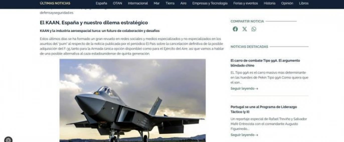 Haberde, İspanya'nın da Türkiye ile KAAN projesinde iş birliği konusunda adım atma hazırlığında olduğu belirtildi. Bu durumun, Ankara ile Madrid arasındaki gelişen siyasi ilişkileri yansıttığı vurgulandı. KAAN'a BAE'nin de ilgi gösterdiği ve bunun Türk savunma sanayisindeki son gelişmeleri vurguladığı belirtildi. Türkiye'nin Mısır, İspanya ve BAE'yi KAAN programına çekmedeki başarısının, askeri-endüstriyel sektörü için önemli bir başarıyı temsil ettiği, araştırma ve geliştirmeye yapılan yatırımları artırdığı, üretimi hızlandırdığı, maliyetleri düşürdüğü, küresel rekabet gücünü artırdığı ve bölgedeki hava gücü dengesinde yeni bir denge yaratabileceği kaydedildi.