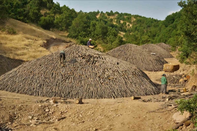 Her sabah saat 05.00'te başlayan çalışma temposu, akşam saat 20.00'a kadar devam ediyor. Kadınlar, erkeklerle birlikte üretimde yer alırken, ev işleri ve çocuk bakımı gibi ağır yükü de omuzlarında taşıyorlar. Elektriğin olmadığı bu zorlu koşullarda, aileler azim ve kararlılıkla çalışarak geçimlerini sağlıyorlar. Mangal kömürü üreticisi Mehmet Şerif Sazan, 15 yıldır bu işi yaptığını ve ürettikleri kömürü Türkiye'nin dört bir yanına gönderdiklerini belirterek, huzur ve güven ortamının bu ekonomik faaliyeti mümkün kıldığını vurguladı.