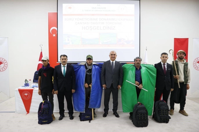 Muş'ta yürütülen 'Sürü Yöneticisine Donanımlı Ekipman Çantası Temini Projesi' kapsamında 400 çobana ekipman çantası dağıtıldı. Muş İl Tarım ve Orman Müdürlüğü konferans salonunda gerçekleştirilen tören, saygı duruşu ve İstiklal Marşı'nın okunmasıyla başladı.